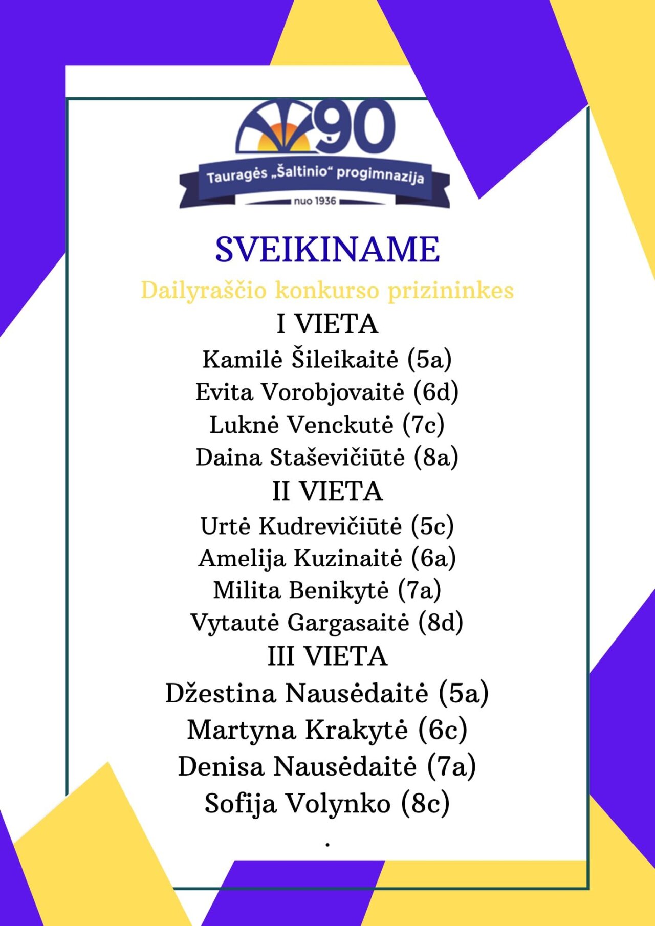 Sveikiname nugalėtojas ir dėkojame visiems konkurso dalyviams, puoselėjantiems dailaus rašto tradicijas. Kiekvienas ranka parašytas žodis dar kartą priminė, kad gimtoji kalba – mūsų tapatybės pamatas. Dailyraščio konkursas tapo tikra švente žodžiui, gimtajai kalbai ir mokyklos istorijai.