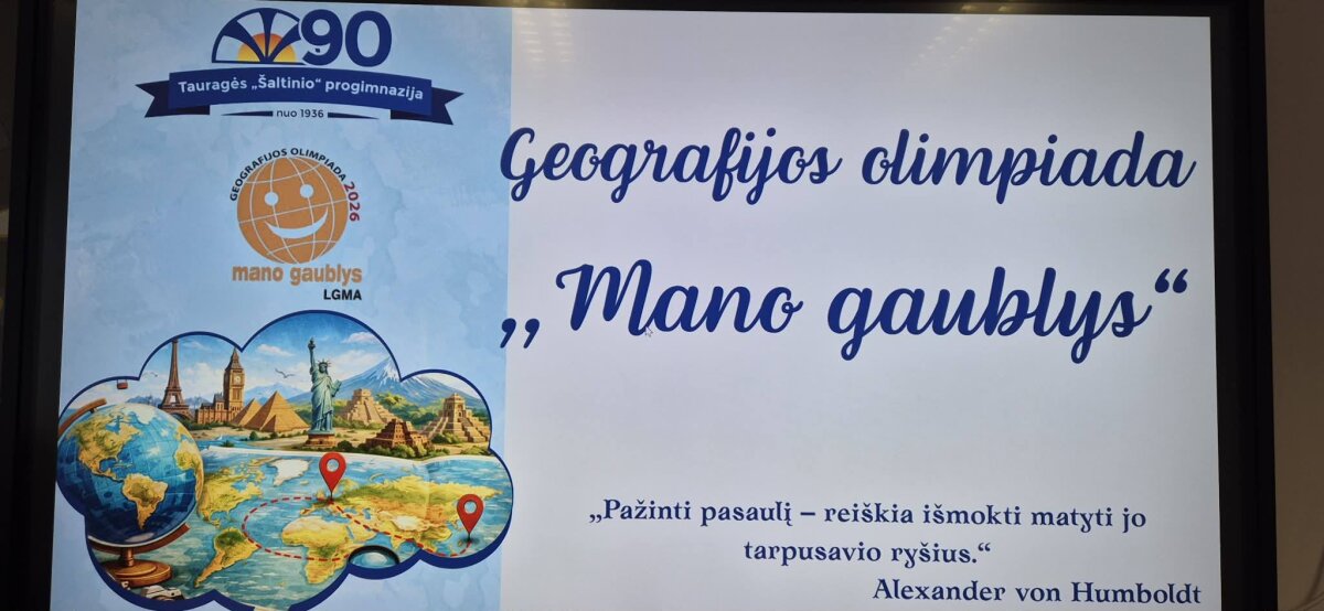 Vasario 24 dieną net 50 aktyviausių 6–8 klasių mokinių išbandė savo jėgas mokyklinėje geografijos olimpiadoje „Mano gaublys“. Džiaugiamės ir nuoširdžiai sveikiname visus dalyvius! O mokiniams, patekusiems į rajoninį etapą, linkime didžiausios sėkmės.Tegul jūsų smalsumas veda pirmyn, o kiekvienas atradimas įkvepia siekti dar daugiau!!!