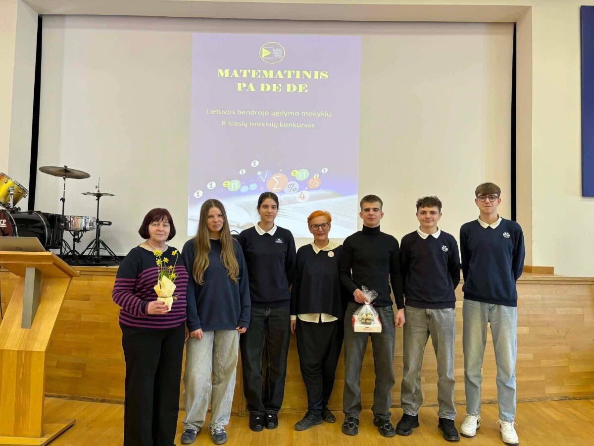 Kovo 20 d. mūsų progimnazijos aštuntokų komanda (Nedas Vaištaras, Markas Preikšaitis, Tautvydas Samoška, Patricija Bartkutė, Margarita Dikšaitytė) su mokytojomis Virginija Dieniene ir Aldona Pociene vyko į Kauno Stepono Dariaus ir Stasio Girėno gimnazijos organizuojamą Lietuvos bendrojo ugdymo mokyklų 8 klasių mokinių konkursą „Matematinis PA DE DE“. Konkurse dalyvavo 23 komandos iš įvairių Lietuvos miestų. Aštuntokai turėjo atlikti įvairias matematines užduotis. Po dviejų valandų intensyvaus mąstymo ir uždavinių sprendimo, mūsų progimnazijos aštuntokai laimėjo 2 vietą.