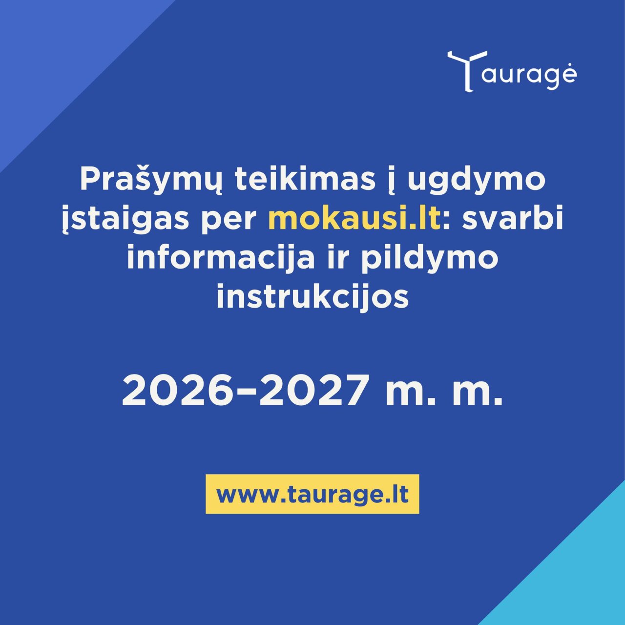 Instrukcijos: https://taurage.lt/prasymu-teikimas-i-ugdymo-istaigas.../
