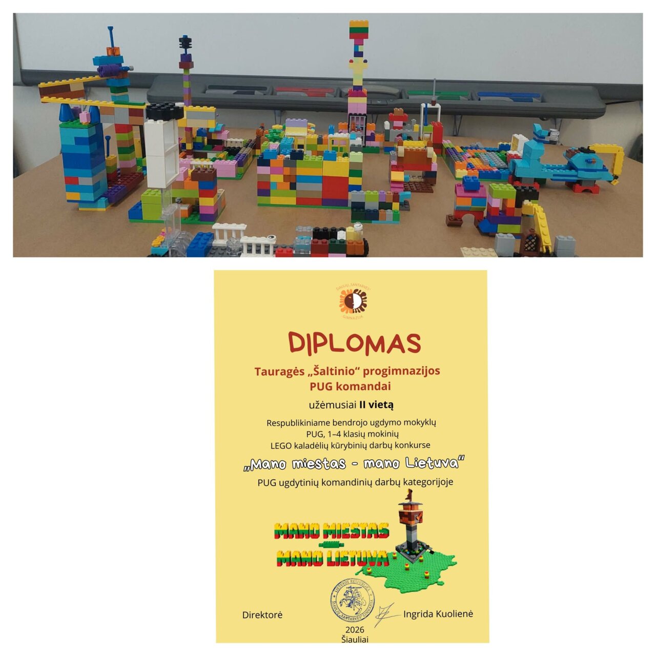 Sukurti statiniai ir gamtiniai objektai dalyvavo respublikiniame LEGO kūrybinių darbų konkurse „Mano miestas – mano Lietuva“, skirtame Lietuvos nepriklausomybės atkūrimo dienai paminėti. Džiaugiamės, kad 4 PUG jaunieji inžinieriai savo amžiaus grupėje laimėjo II vietą! Konkursą organizavo Šiaulių „Santarvės“ gimnazija.