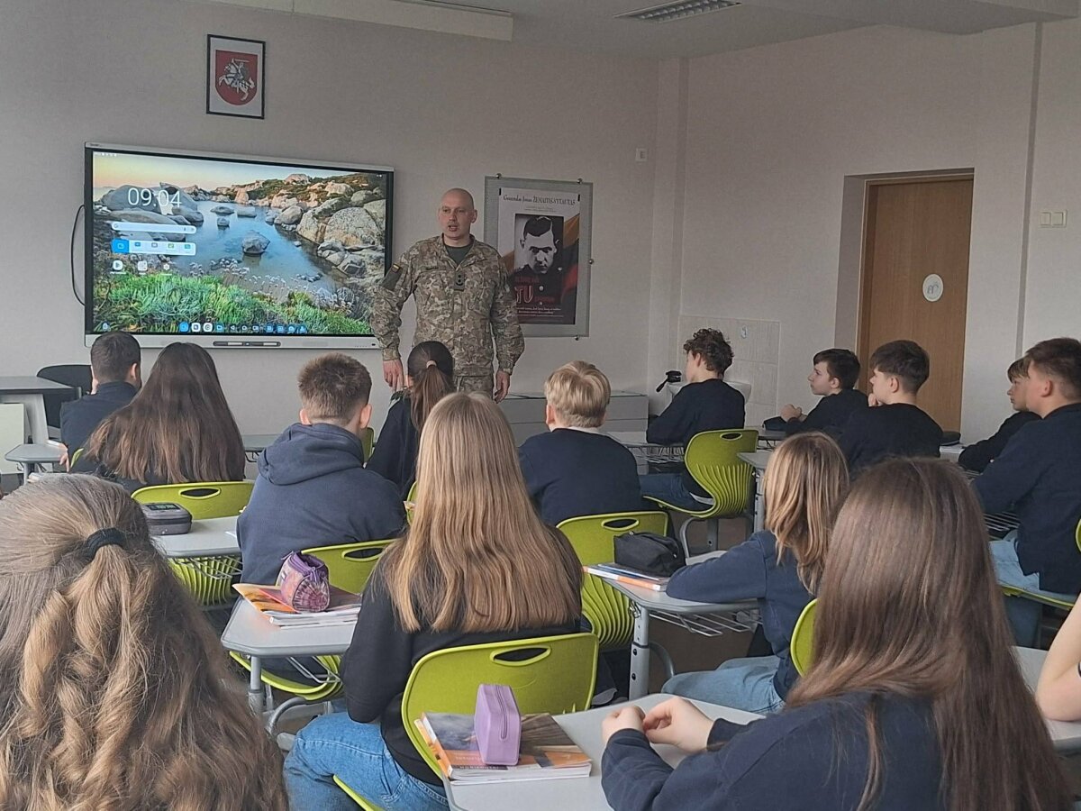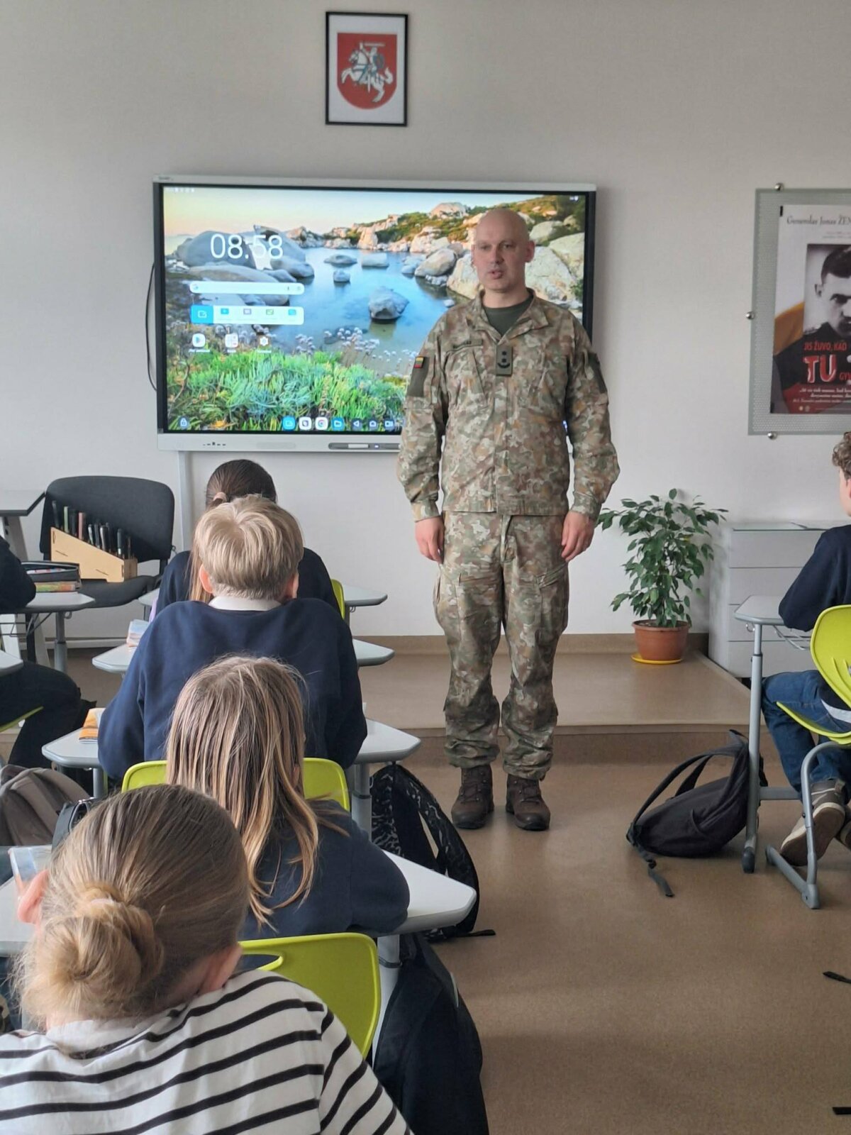 Šiandien mūsų mokykloje svečiavosi Didžiosios kunigaikštienės Birutės ulonų batalionas vadas plk. lnt. Antanas Survilas. Susitikimo metu 6b ir 7a klasių mokiniai turėjo galimybę iš pirmų lūpų išgirsti apie kario profesiją, Lietuvos kariuomenės kasdienybę, saugumo svarbą ir tai, kaip svarbu siekti savo tikslų.